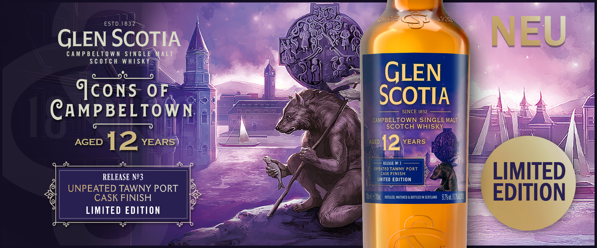 Die Glen Scotia Icons of Campbeltown Serie dient als eine Hommage an das Wahrzeichen von Campbeltown, dem "Campbeltown Cross" und ist Inspiriert durch eine Reihe von Heiligen, ikonischen Wesen und Kreaturen, die in dem Kreuz gemeißelt sind. Jede Veröffentlichung der fünfteiligen Serie soll einen dieser ikonischen Wesen verkörpern und würdigen. Dafür hat sich Glen Scotia mit dem berühmten Künstler Joel Holtzman (Lucasfilm, Marvel, Disney, Macmillan) zusammengetan, um jede dieser Ikonen zum Leben zu erwecken, während Master Blender Iain McAlister einen Whisky kreiert hat, der jede Ikone perfekt in Szene setzt.
