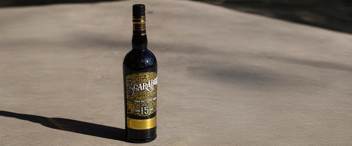 Uns erreicht das neue und limitierte Age-Statement aus Islay – Scarabus 15 Jahre. Welche Brennerei sich hinter dem mystischen Single Malt der legendären Whisky-Region Islay versteckt, bleibt jedoch ungewiss.